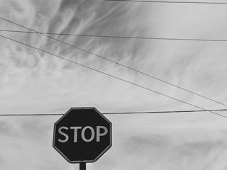 320x240 знак, стоп, чб, небо, провода обои nokia e72, e71, asha, alcatel onetouch