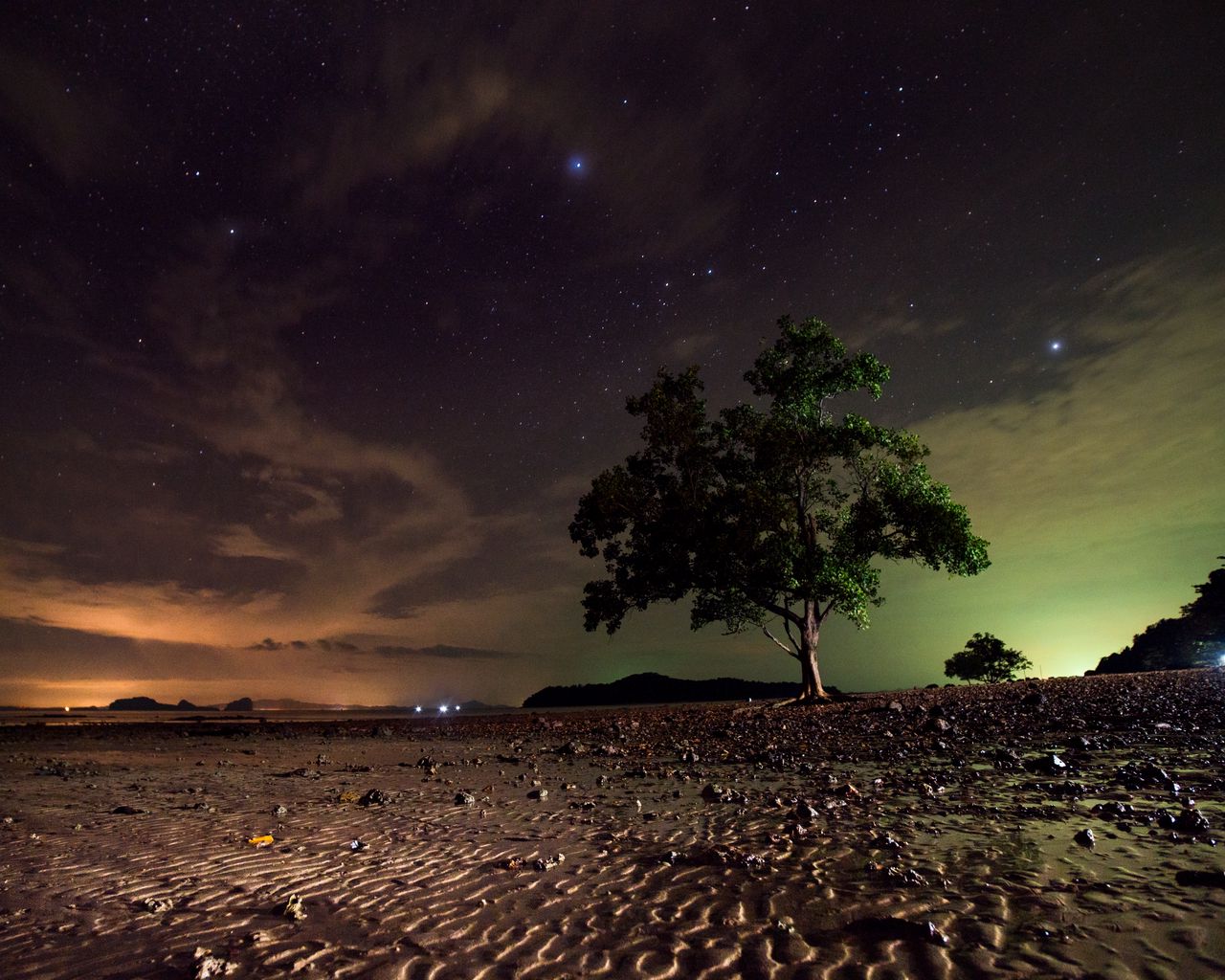 1280x1024 звездное небо, дерево, песок, ночь, ко ланта, таиланд обои стандарт 5:4
