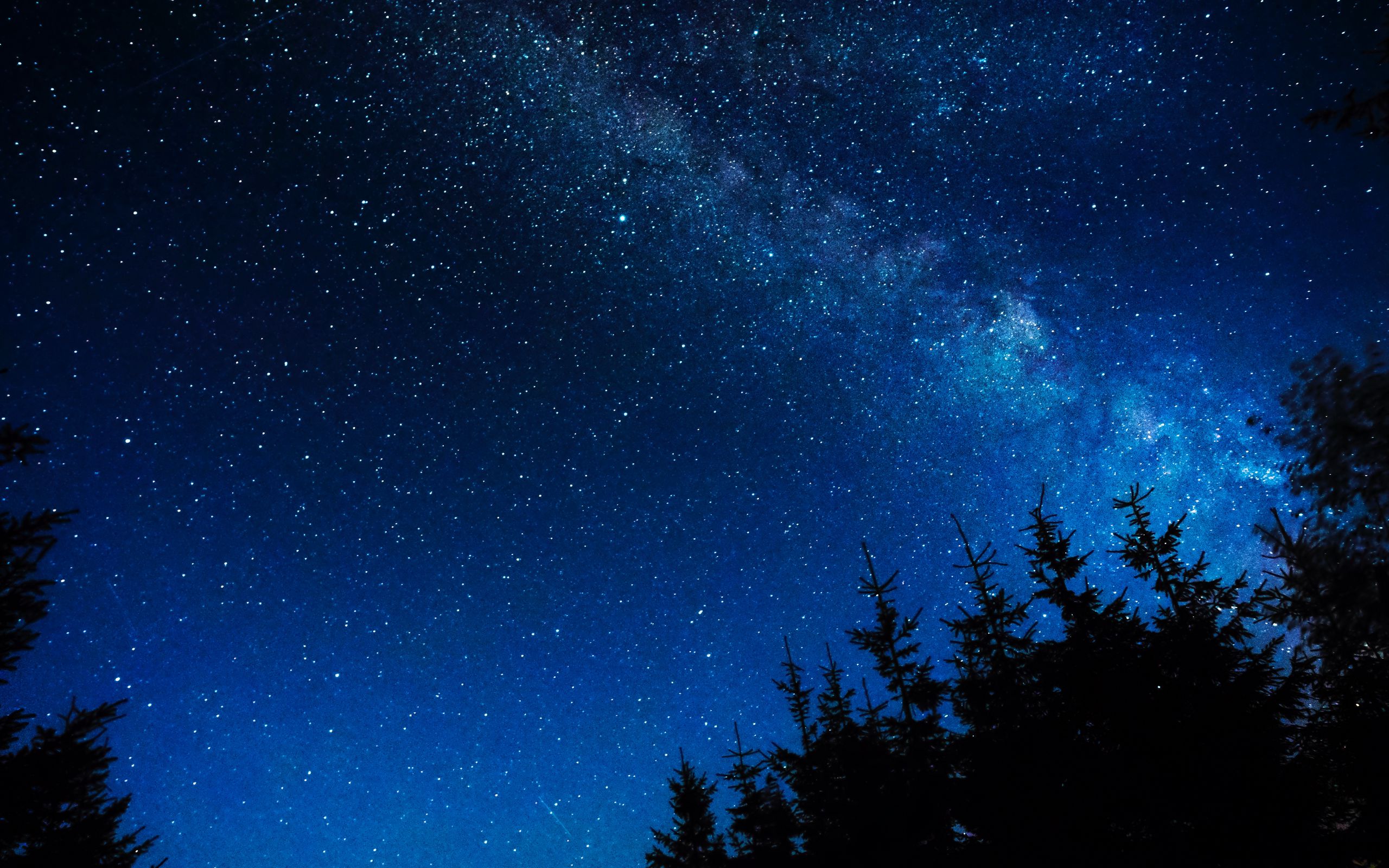 2560x1600 звездное небо, ночь, звезды, блеск, деревья обои 16:10